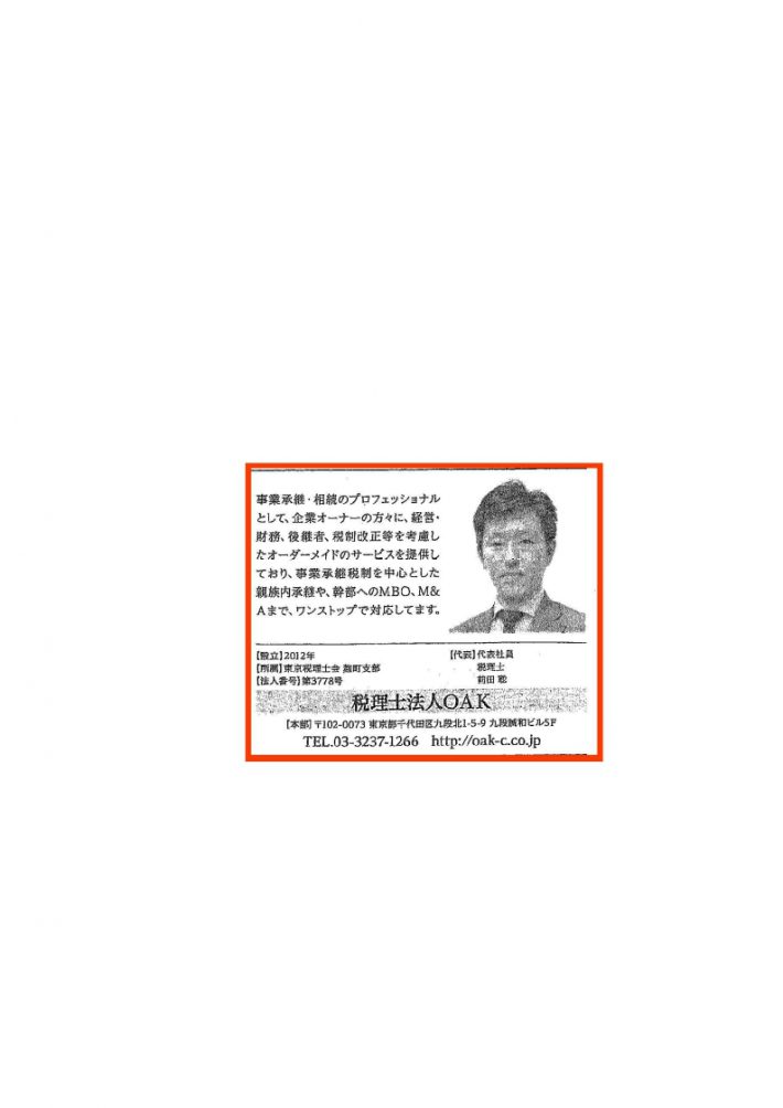 1/30付日本経済新聞の【事業承継税制プロフェッショナル 税理士30選】に
